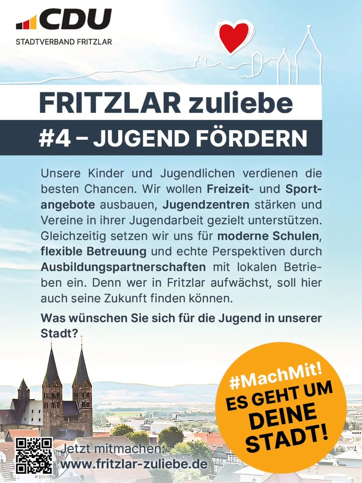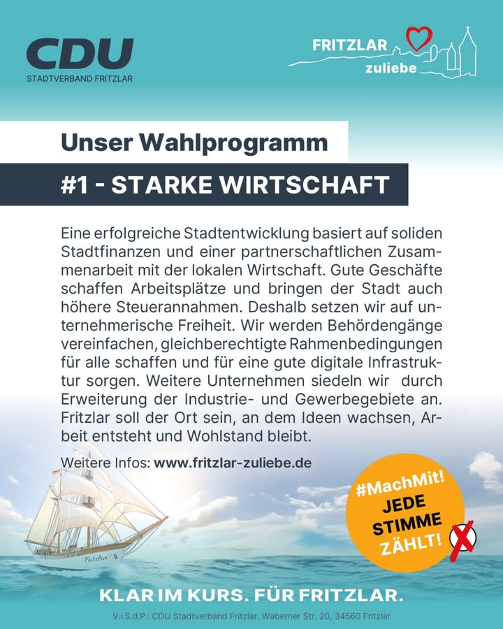 Mit einer vernünftigen - aber zukunftsorientierten - Stadtpolitik sorgt die CDU dafür, dass Fritzlar erfolgreich bleibt.