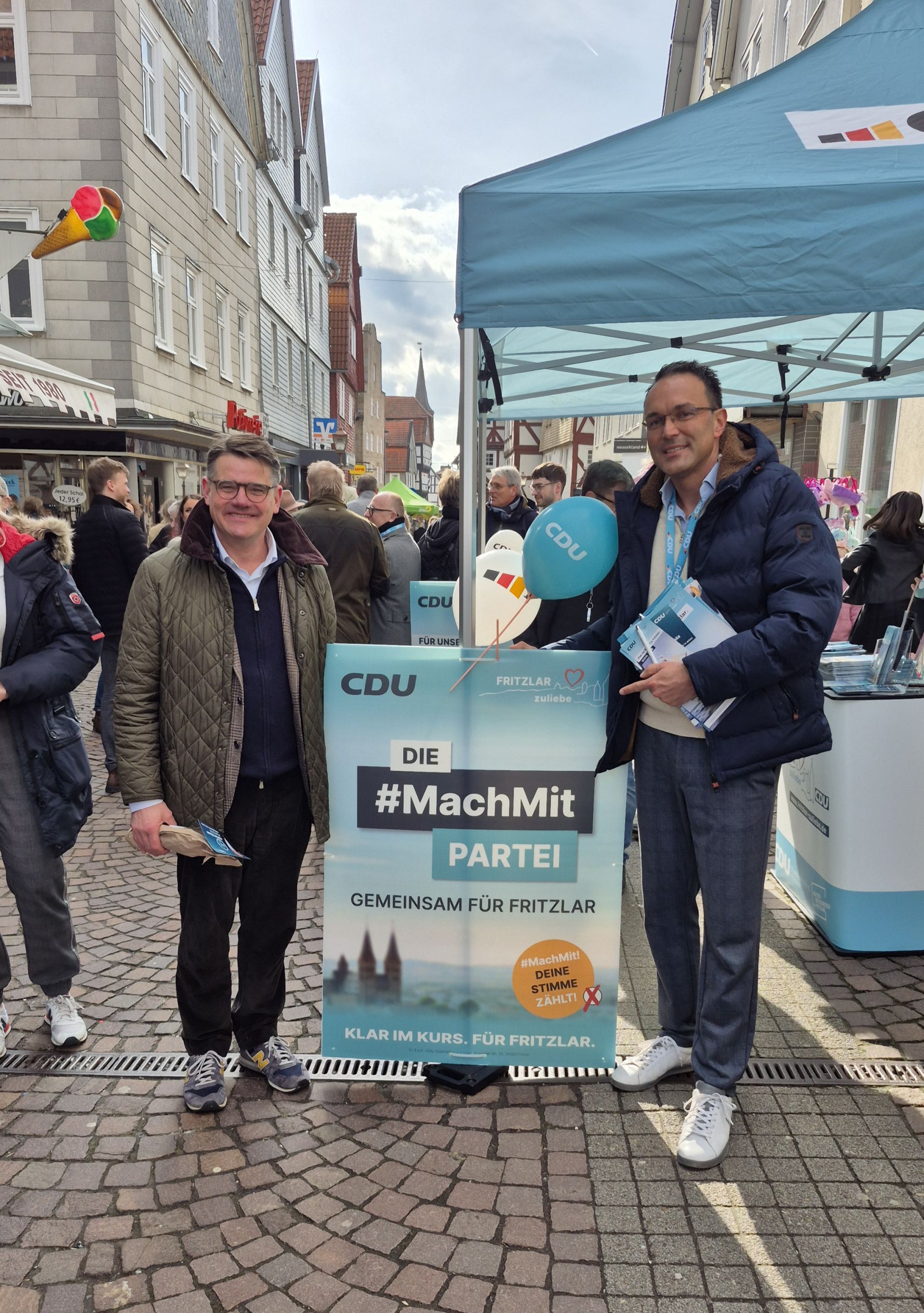 Der hessische Ministerpräsident Boris Rhein war zu Gast in der Dom- und Kaiserstadt, um die CDU Fritzlar im Vorfeld der anstehenden Kommunalwahl zu unterstützen. Bei strahlendem Wetter nahm er sich die Zeit für den direkten Austausch – sowohl mit den Mitgliedern der CDU als auch mit den Bürgerinnen und Bürgern in der Fußgängerzone.